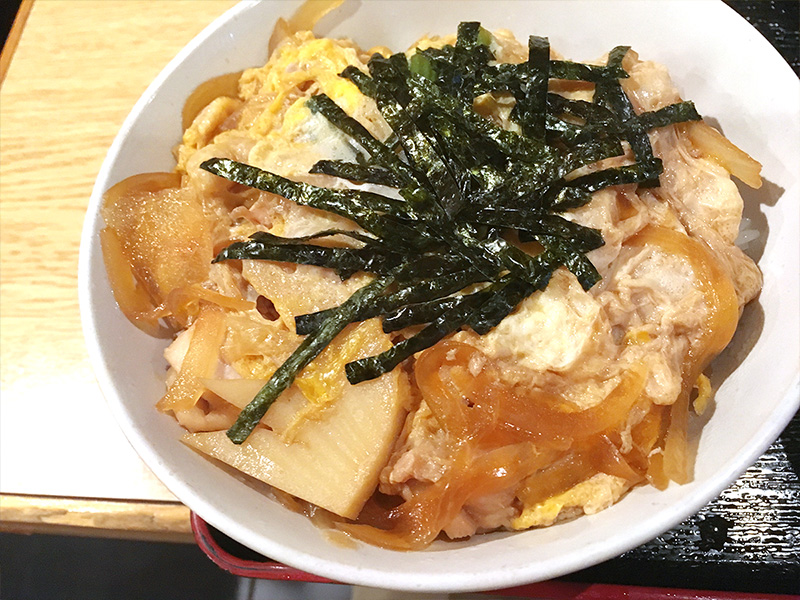 そば処の親子丼は、丼専門のお店よりもさっぱりした味付けのものが多いと思います。これは推測ですが、そばやうどんの味付けが繊細な分、丼の味付けが濃すぎると、そばやうどんの味がわからなくなるからではないかなーと思っています。具が大きいので、アゴで味わえる感じが印象的でした。